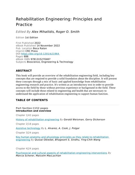 Title: - Rehabilitation Engineering Principles And Practice